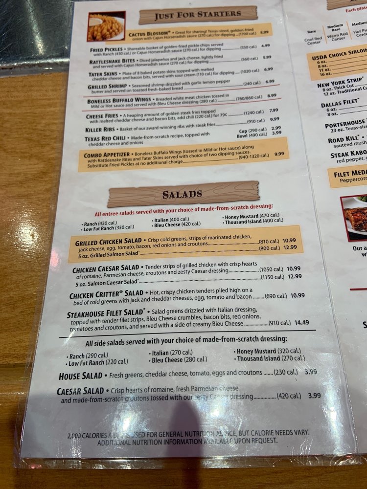 Introducing the Menu at Texas Roadhouse Cheektowaga